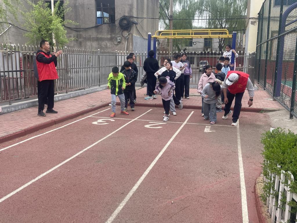 活动当天,孙凯涛、张金棒两位老师充分发挥体育专业优势,针对小学生的年龄特点和身体素质水平,精心设计了教学方案。在短跑项目中,他们从起跑姿势、步频节奏、摆臂动作等基础环节入手,逐一示、耐心纠正;在跳远项目中,则重点讲解了助跑速度控制、起跳角度和落地缓冲等关键技术要领。“注意手臂摆动和脚步配合”“起跳时要果断有力”——操场上,两位志愿者穿梭在学生中间,手把手指导动作,用生动有趣的教学方式激发了孩子们对体育运动的热爱。同学们学习热情高涨,认真模仿每一个动作,操场上欢声笑语不断。